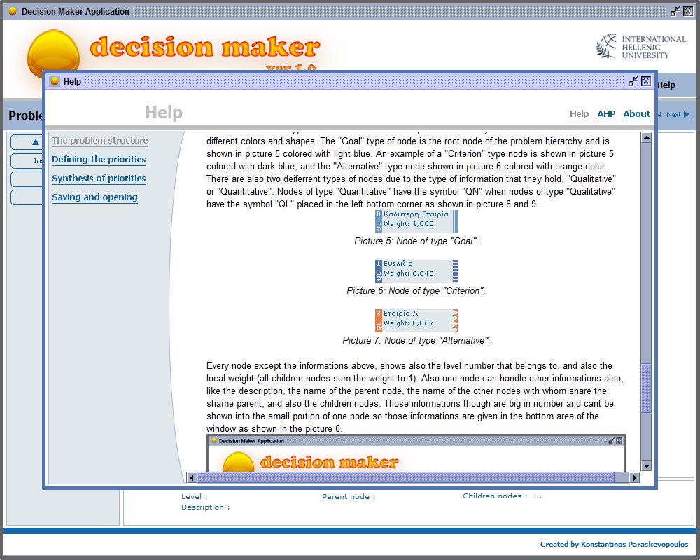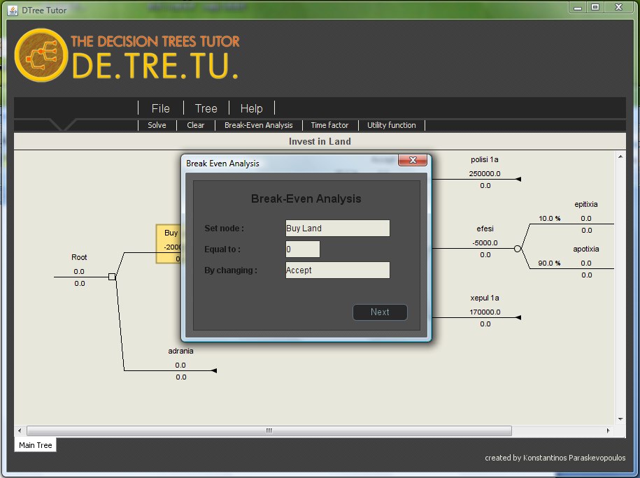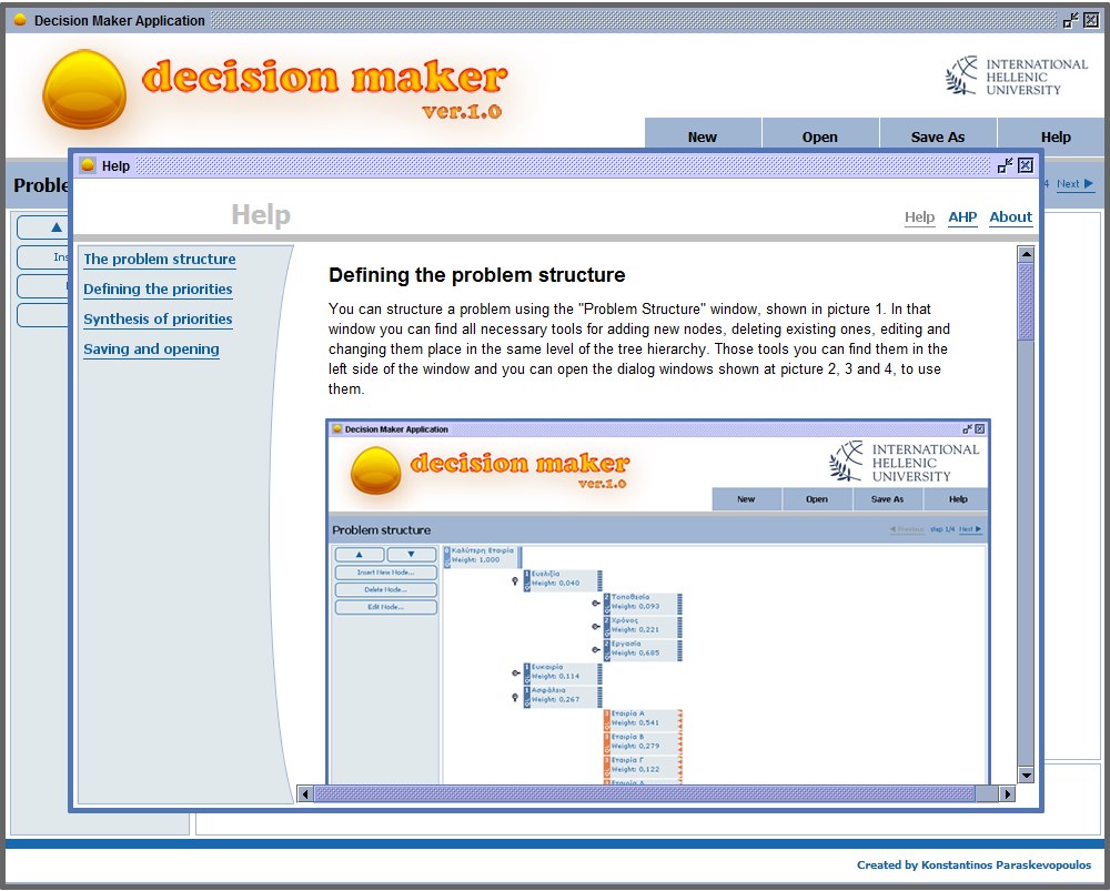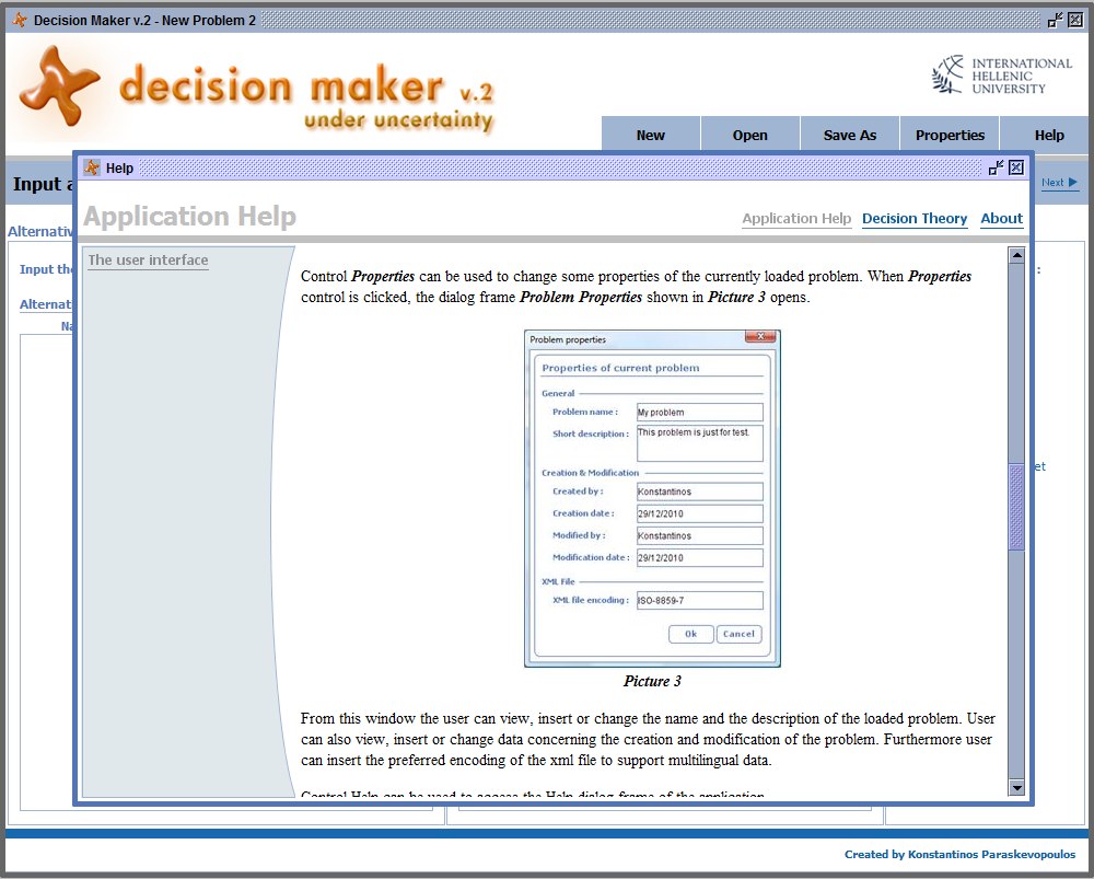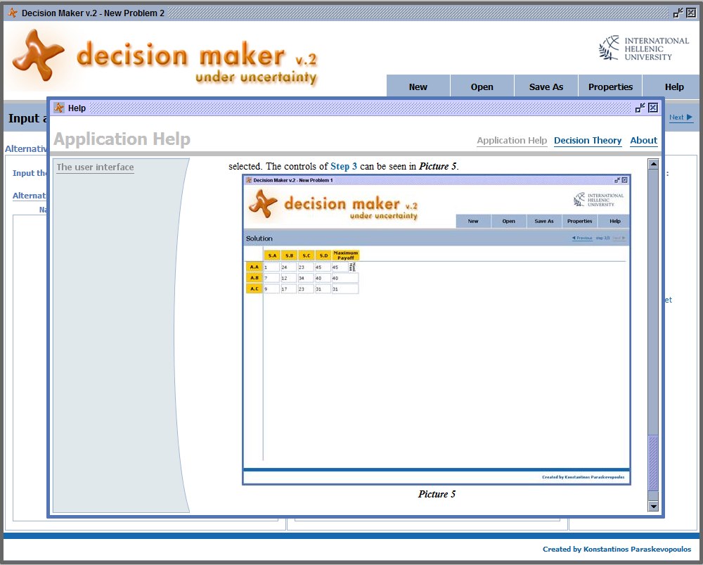 Στα πλαίσια του έργου αναπτύχθηκαν σε Java τα πρωτότυπα λογισμικά Decision Maker, W.A.S., Decision Maker Under Uncertainty, DE.TRE.TU. τα οποία καλύπτουν θέματα από τα γνωστικά αντικείμενα Decisions Under Certainty, Multicriteria Methods, AHP, Weighted Average Sum, ELECTRE II, Decisions Under Ignorance or Risk, Decisions Under Risk (with various decision criteria), Decisions under Uncertainty, Sequential Decision Trees, Decision Making through Data Analysis, Bayesian Networks, Artificial Neural Networks ANNs, Classification & Association Rules, Genetic Algorithms (GAs)